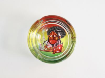 מאפרת זכוכית עגולה – דגם "ראסטה משוגע"