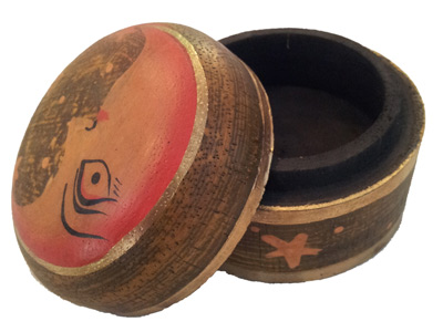 קופסת עץ קטנה ציור שמש/ירח בעבודת יד